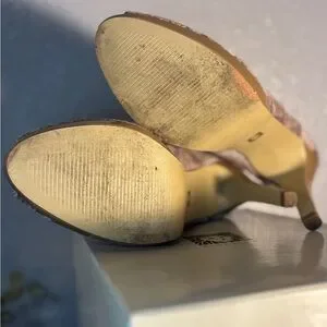 **Gently used/worn 3 times. Just forgot they were in my closet. All of the outside is in Excellent condition. The inside of the shoes are peeling a little.**