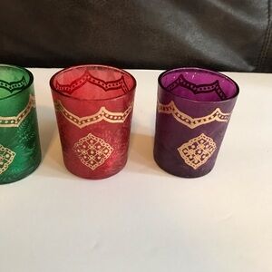 Pier 1 NWT Multicolor Colorful Glass Gold Accent Votive Candle Holders Set of 4