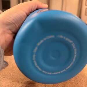 Blue water bottle with a playful dog and soccer ball design. Features 'Life is Good' text.