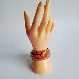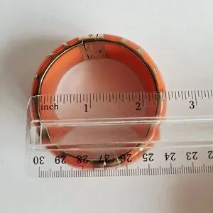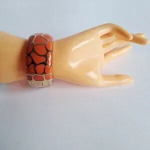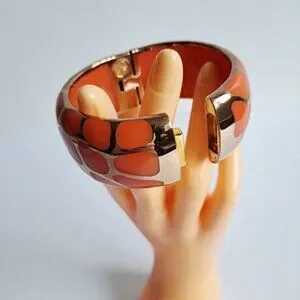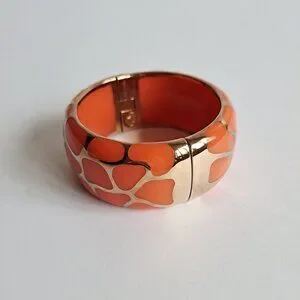 New Angelique De Paris 925 Gold Platted Coral Leopard Print Wide Bracelet