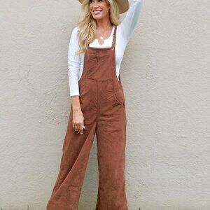 Women Corduroy Overalls Winter Fall Casual Loose Sleeveless Adjustable Strap Wid