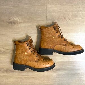 Ariat Women’s Tan Leather Ostrich Riding Boots Lace Up Western Cowgirl Casual 6