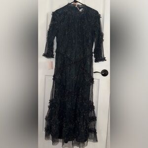 Chic long sleeve dress with intricate lace details. Perfect for formal occasions. Elegant and timeless design.