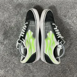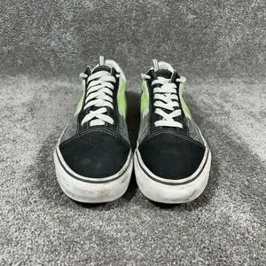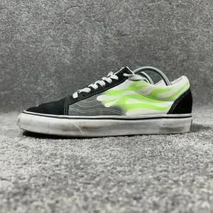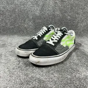 Vans Old Skool Flames Mens Size 9.5 Black White Green Athletic Skate Shoes Used