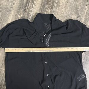 Stylish black sheer shirt with button-down design. Ideal for casual outings.