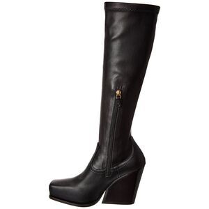 About the brand: Sharp. Sophisticated. Sustainable. Please note: Size selections are European. For US conversions, please reference size chart. Made in Italy Cowboy Stretch Knee-High Boot in black vegan-friendly faux leather and gold-tone hardware with chunky heel and inner gripping at cuff Lightly padded insole Smooth man-made sole 4.5in heel 15in shaft 12in boot circumference Please note: All measurements are approximate and were taken from a size 37; slight variations may occur. Our products are 100% genuine. In some cases we purchase merchandise from trusted independent suppliers and not directly from the brand owner. In all cases we stand by the authenticity of every product sold on our site.