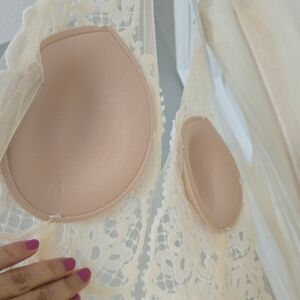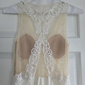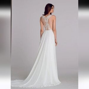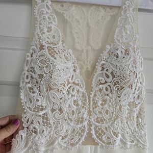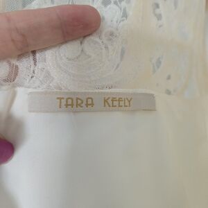 Tara Keely lace applique sheer ivory chiffon flowy wedding dress sz Small 2/4
