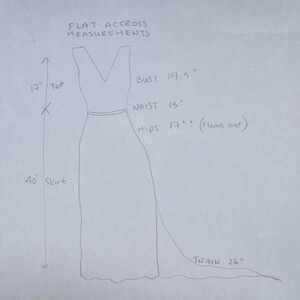See last photo for drawing with measurements. All measurements are flat accross. Please measure yourself or your favorite formal dress to compare.