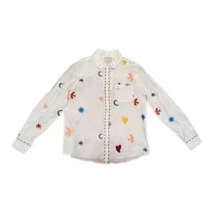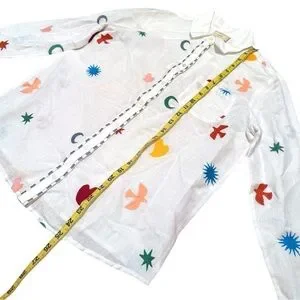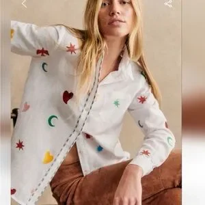 TOMBOY SHIRT SEZANE PANGEA BLOUSE BUTTON UP TOP WHITE NWT SIZE 36 Embroidery