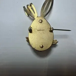 Crafted in textured gold-tone metal with ruby-red rhinestone eyes and nose — one playful wink gives this piece extra character! A whimsical collectible from the 1960s–1970s, perfect for Easter outfits, vintage jewelry lovers, or mid-century charm collectors.
