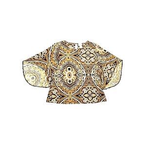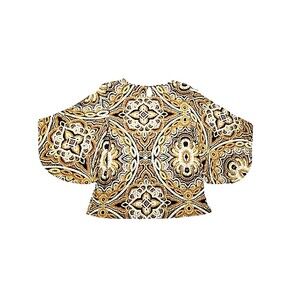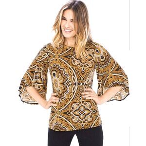CHICO'S Sunflower Medallion Flare Sleeve Top Chicos 0 Small 4 Brown Black Gold