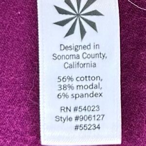 It’s 56% cotton, 38% modal, 6% spandex and machine washable. Size S