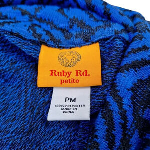 Ruby Rd Petite Med Blue Black Drawstring Cowl Neck Roll-Tab Sweater Top Pocket