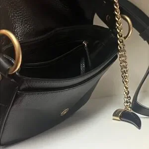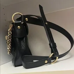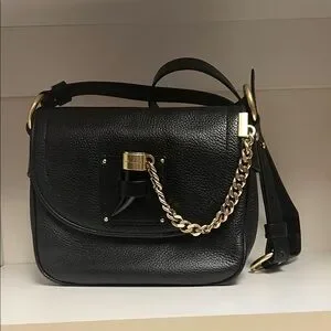 Michael Kors Chic Black Crossbody Leather Bag with Gold Chain