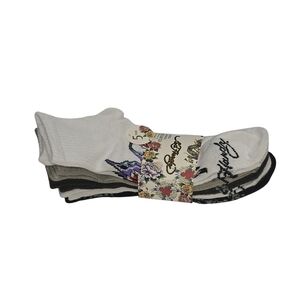 Ed Hardy Women Size 4-10 Black White Gray Fashion Quarter Socks 5 Pack Mid Crew