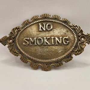 Vintage Ornate Solid Brass NO SMOKING Sign Plaque Oval 6" x 3.5"
