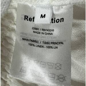 Keywords: White, Reformation, linen, long-sleeve, off-the-shoulder, ruched, top, blouse, size medium, NWOT, sophisticated, contemporary, summer, chic, fashion-forward.