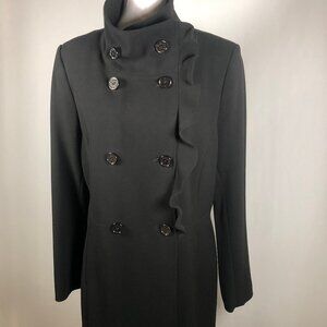 ✨T Tahari Black Ruffled Collar Coat – Elegant & Timeless