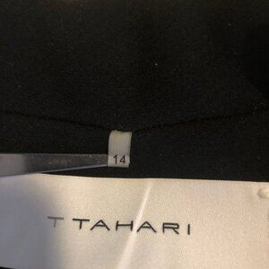 This stunning Tahari black coat captures the essence of refined sophistication.