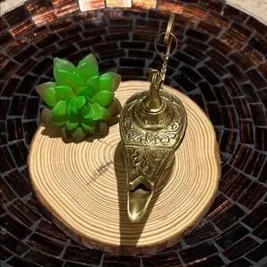 Elegant vintage lacquered brass genie lamp figurine with intricate designs. Perfect for home decor. Made in India.