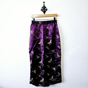 Vintage 90s April Cornell Satin Butterfly Asian Style Maxi Skirt Size XS Purple