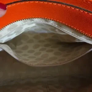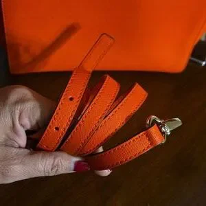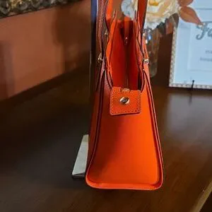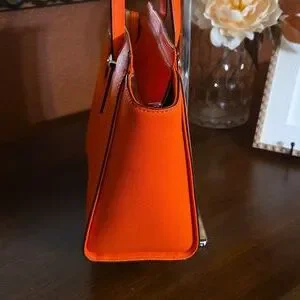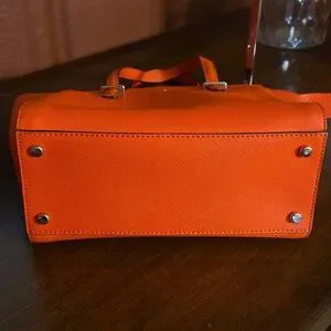 Bold orange satchel with sleek design. Perfect for adding a pop of color.