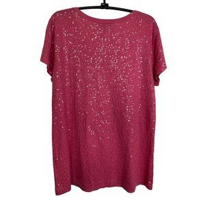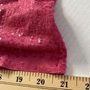 DKNY Womens Pink Sequined Short Sleeve Round Neck Top Size L Rave Party Sexy