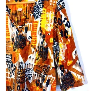Beautiful top with an overlay tribal geometric and animal print with a faux wrap beaded v neck collar. Has some very light wash wear. In great condition!