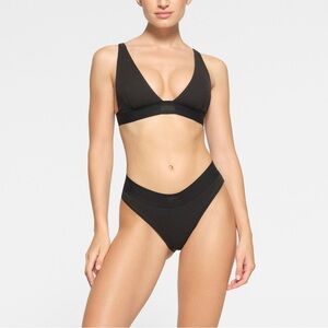 SKIMS Plunge Bralette Ribbed Cotton In Soot/Black SZ XL