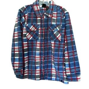QUIKSILVER Youth Boy's L (14/16) Fleece Shirt Jacket Shacket Pockets Blue Plaid