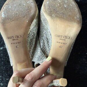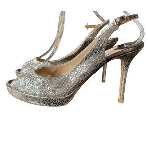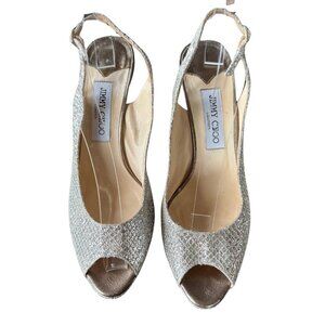 Jimmy Choo Nova Glitter Peep-Toe Slingback Heel womens Size 40 EU