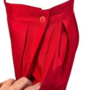 This stunning 1970s deadstock red midi skirt by Rafaella offers timeless elegance with a minimalist design and box pleats that create a graceful, flowing silhouette. Made from a lightweight reflective rayon fabric that adds a hint of sparkle, this skirt exudes a whimsicore and fairycore aesthetic. Two concealed side pockets add practical charm, while the Italian craftsmanship speaks to its high quality. In new-with-tags (NWT) condition, this skirt is perfect for adding a vintage-inspired, romantic touch to any look.