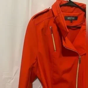KENNETH COLE REACTION Red with gold zipper long sleeve jacket, size L
