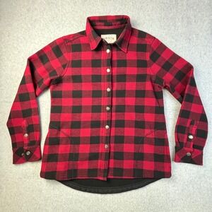 ORVIS Buffalo Plaid Fleece Lined Shirt Jacket Shacket Red Black Women Size S CH