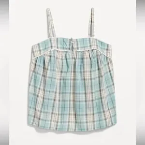 OLD NAVY Striped Smocked Pajama Cami Swing Top in Big Blue Plaid
