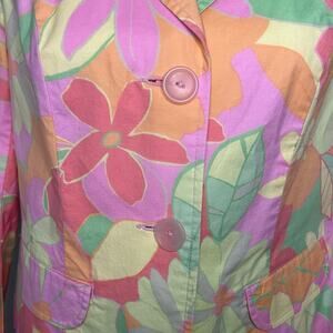 Sigrid Olsen pastel multicolor floral 3/4 sleeve cotton spring blazer size 8