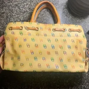 Vintage Dooney & Bourke Yellow Multicolor Logo Tote