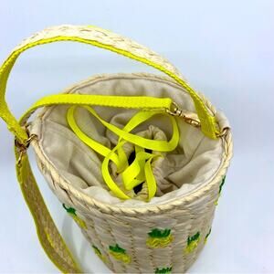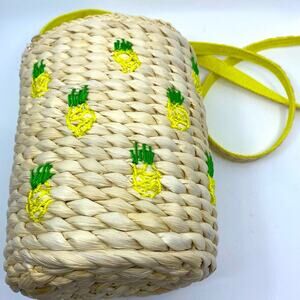 Rachel Ashwell Straw Rattan Jute Pineapples Bucket Crossbody Shoulder Bag Tote Purse Handbag