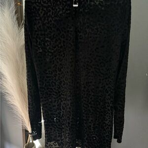 This Lane Bryant bodysuit features a sleek black design with a fitted silhouette and a striking graphic pattern. The long sleeves and mandarin collar add a touch of elegance, making it a versatile top for any occasion. Crafted with attention to detail, this bodysuit combines style and comfort effortlessly.
