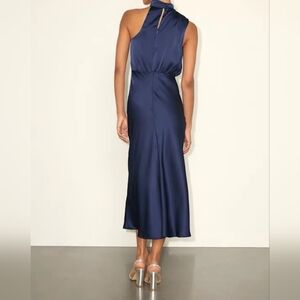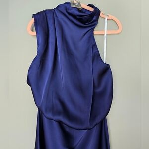 Distinctive Charm Navy Satin Asymmetrical Midi Dress, XS