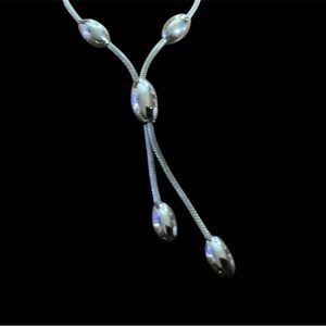 Lee Micheal “Y” (bolo style) necklace. Beautiful large sterling silver beads on woven mesh chain, very elegant. Total length of necklace is 24”. They have many “Y” necklaces but not like this, you can’t get this anymore. Excellent gift idea.