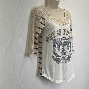 Free People - We The Free Great Falls Montana Stripe Lace Graphic Top Size Small