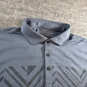 Keywords: Travis Mathew, polo shirt, mens, XL, blue, golf, Trilogy Aviation Group, All Day Access, performance, casual, athletic, geometric pattern
