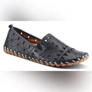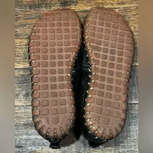 Stylish and comfortable black leather slip-on loafers. Perfect for casual style and a comfort fit.