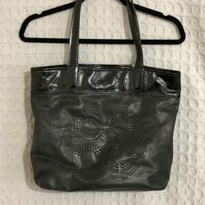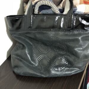 Perfect carryall! Great metallic gray and patent leather, with Coach logo. Well loved, but excellent condition. No wear or scratches on leather, see photos.