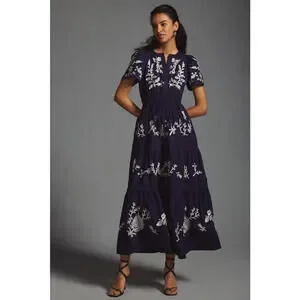 Anthropologie - Somerset embroidered Maxi Dress w/ Blue Floral Embroidery, XSP