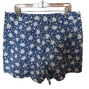 J. CREW Women’s Floral 100% Cotton Sky Blue White Black Lined Shorts Size 16