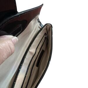 Ann Taylor Wicker Almond/Black Patent Leather Clutch With Silver Buckle Size OS