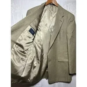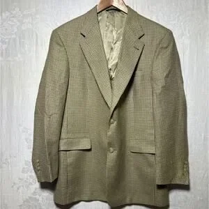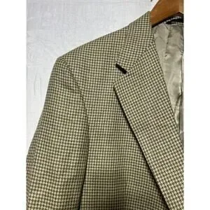 Vintage Burberrry London Sport Coat 43R Brown Tan Houndstooth Suit