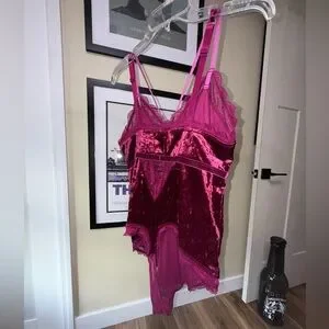 Experience elegance with this stunning pink velvet lace bodysuit. Perfect for a night in or out, it combines comfort with style.